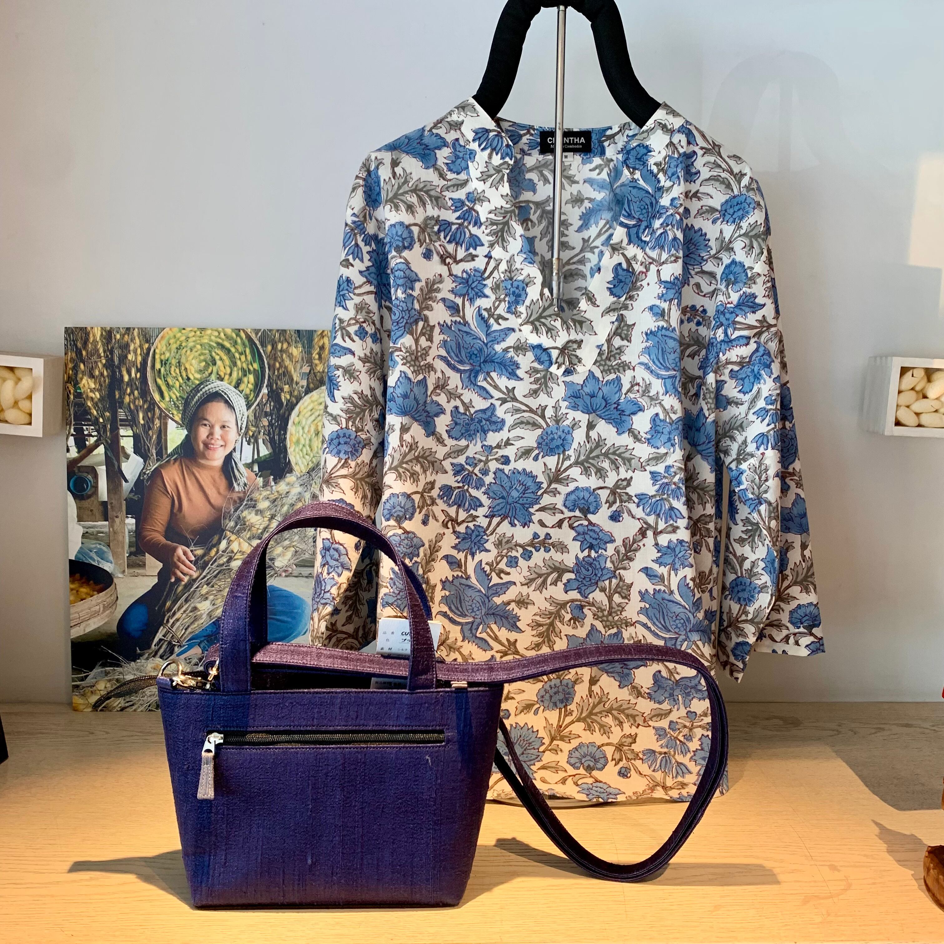 上質なカンボジアシルクを使用した可愛いバッグです。