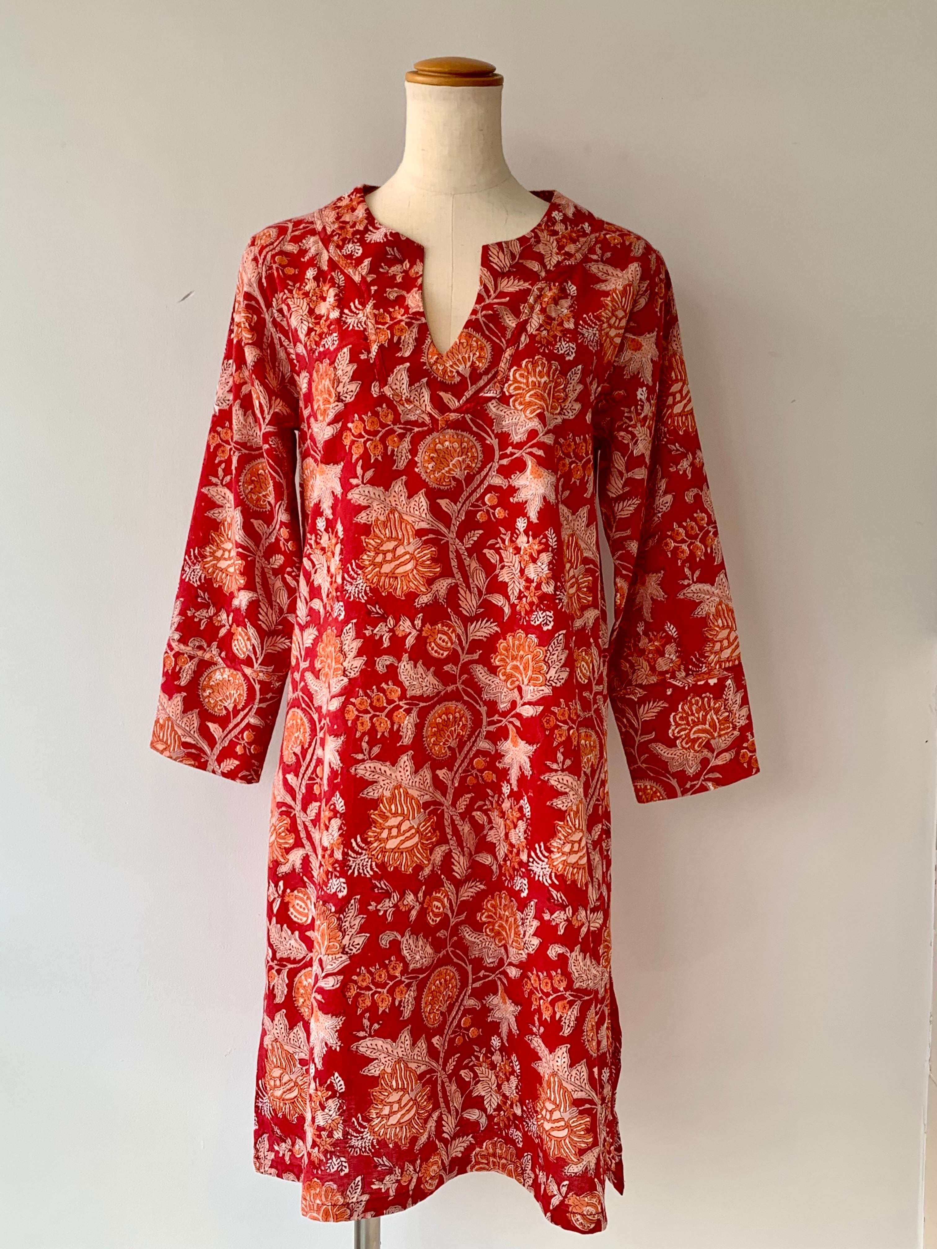 【新作】涼しい チュニック レッド 赤 インド綿 夏ファッション