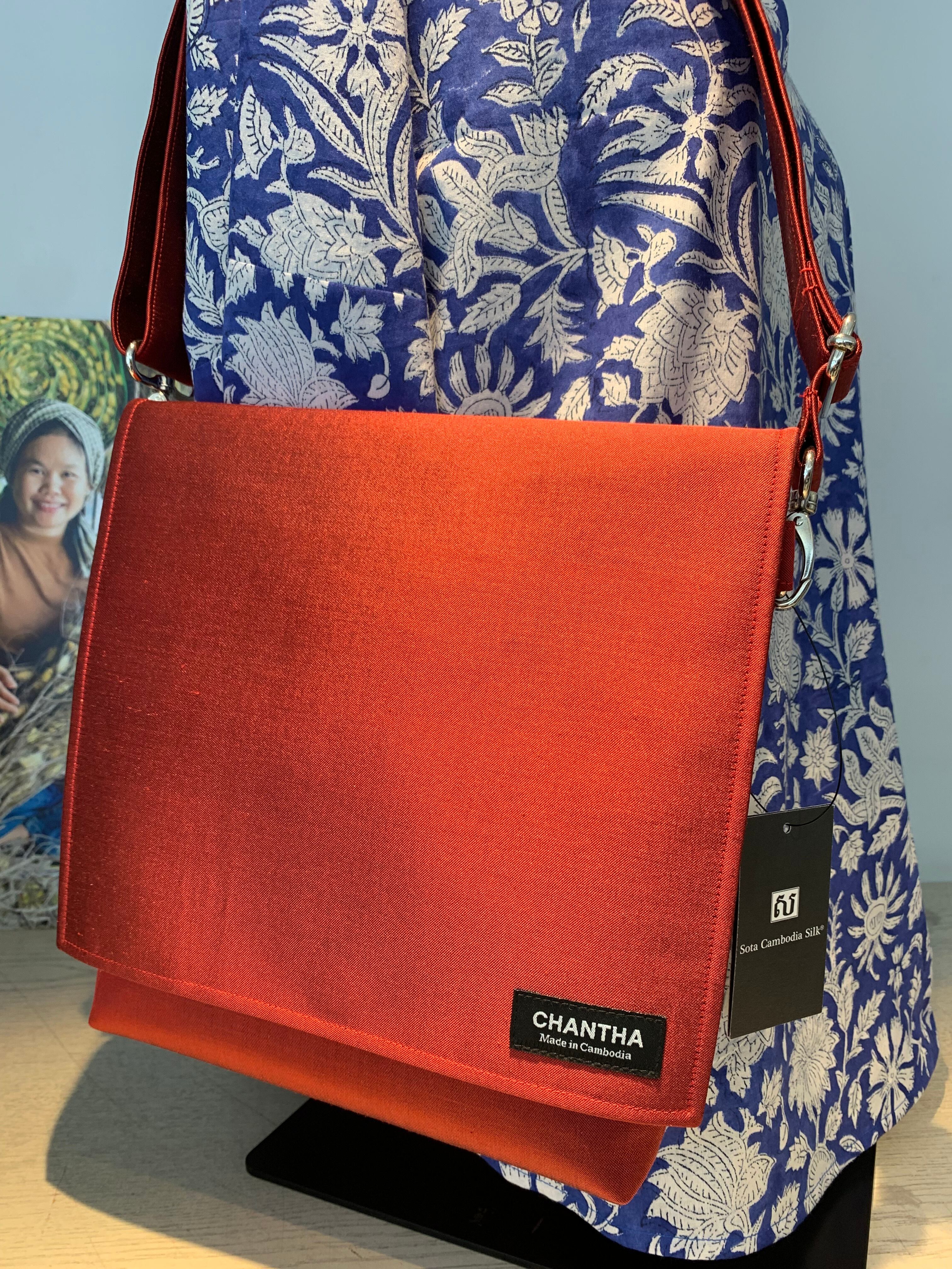 カンボジア産の上質なシルクを使用したショルダーバッグです。