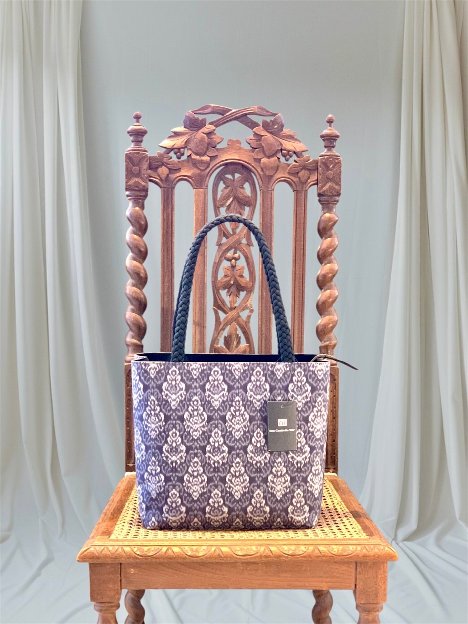 カンボジア産の上質なシルクを使用した絣バッグ。