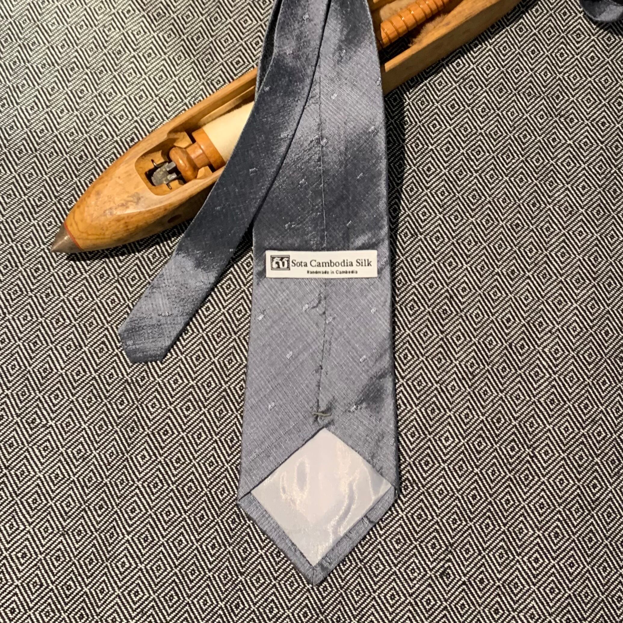 カンボジア人の熟練技による手織り手作業した高級ネクタイ。