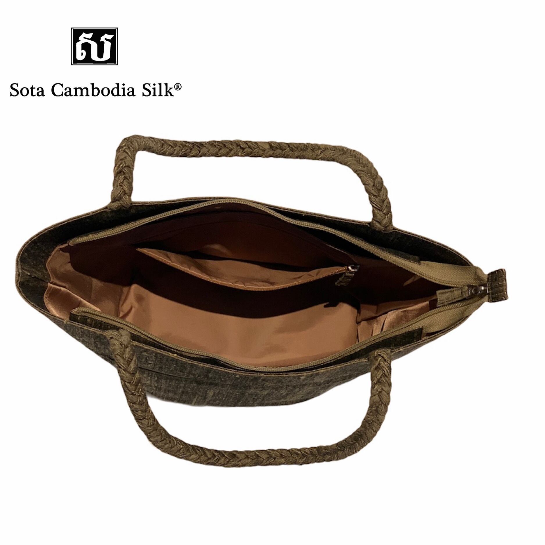 (完売再入荷なし】バッグ シルクバッグ 軽いバッグ 敬老の日 夏ファッション 緑 カーキ シルクバッグ カンボジアシルク シルク バッグ