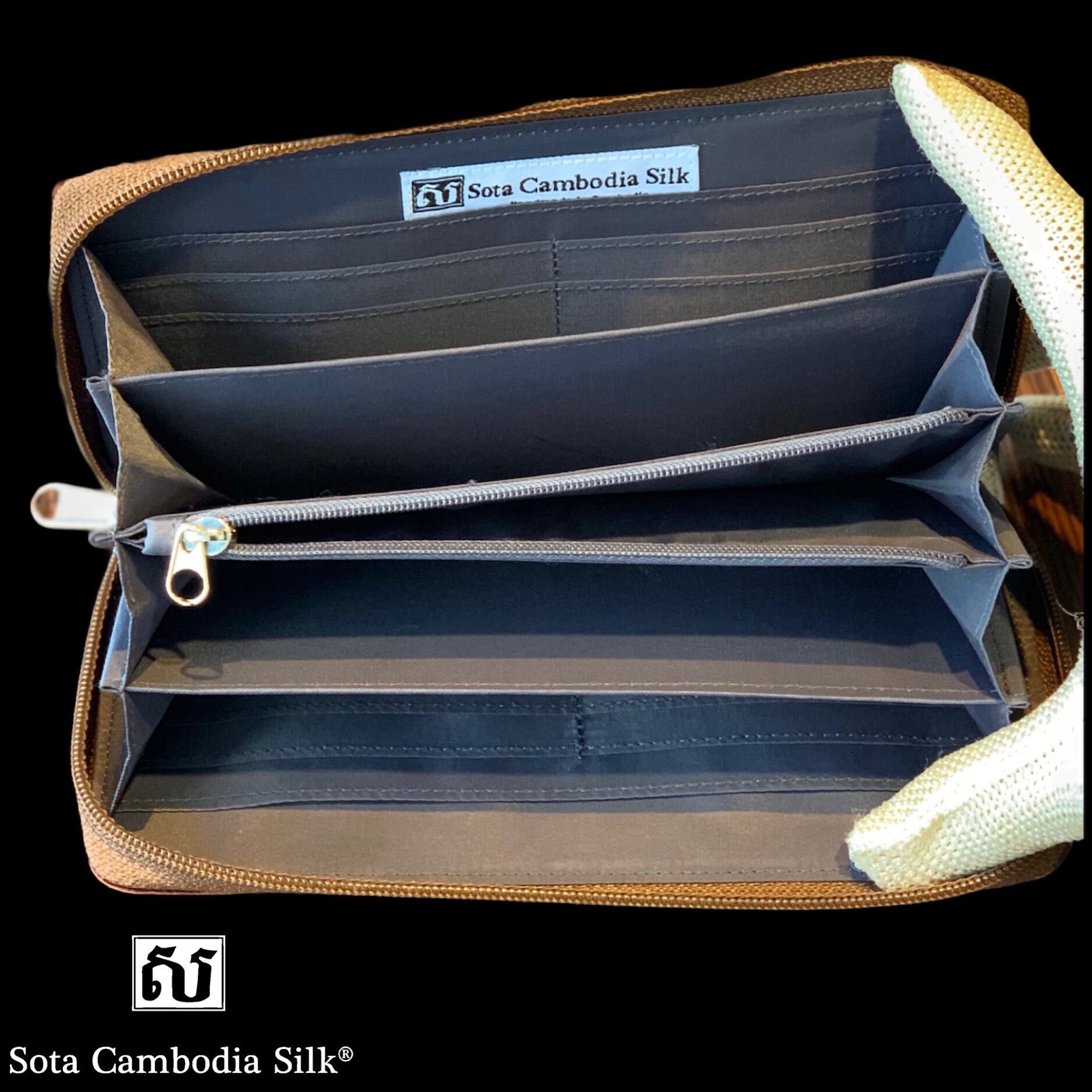 【完売】シルク財布 軽量財布 ブラウン プレゼント シルク財布 クリスマス 軽い財布 敬老の日 シルク財布 APSARA WALLET カンボジアシルク