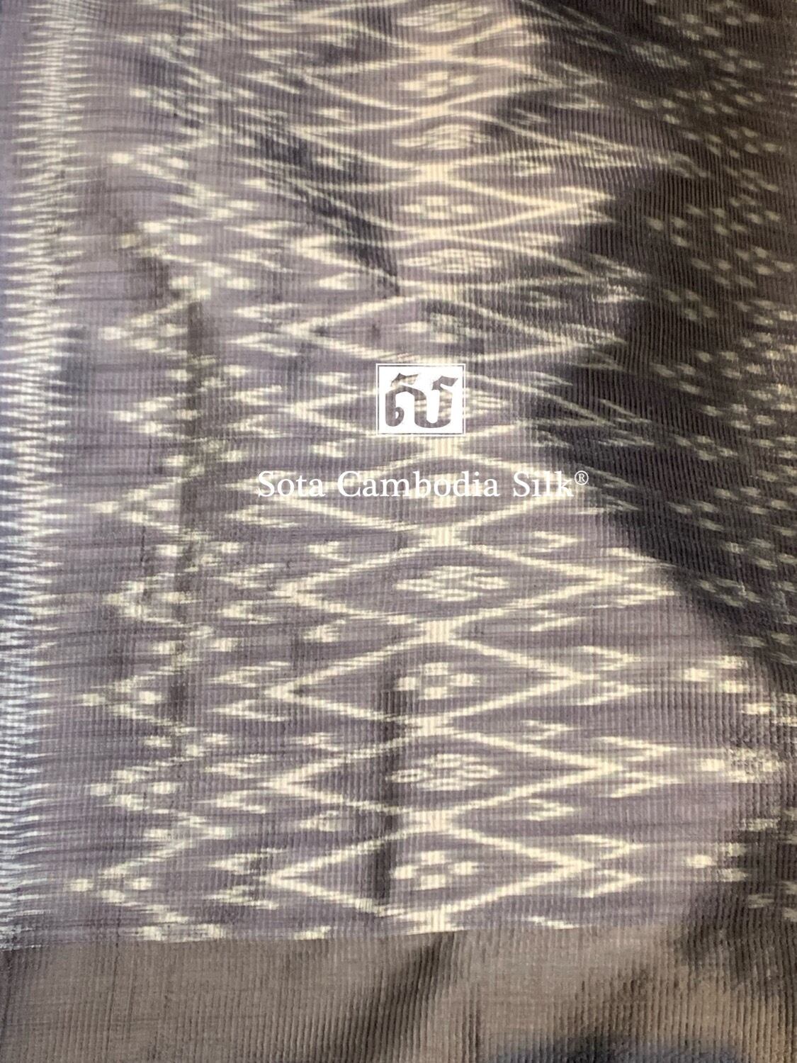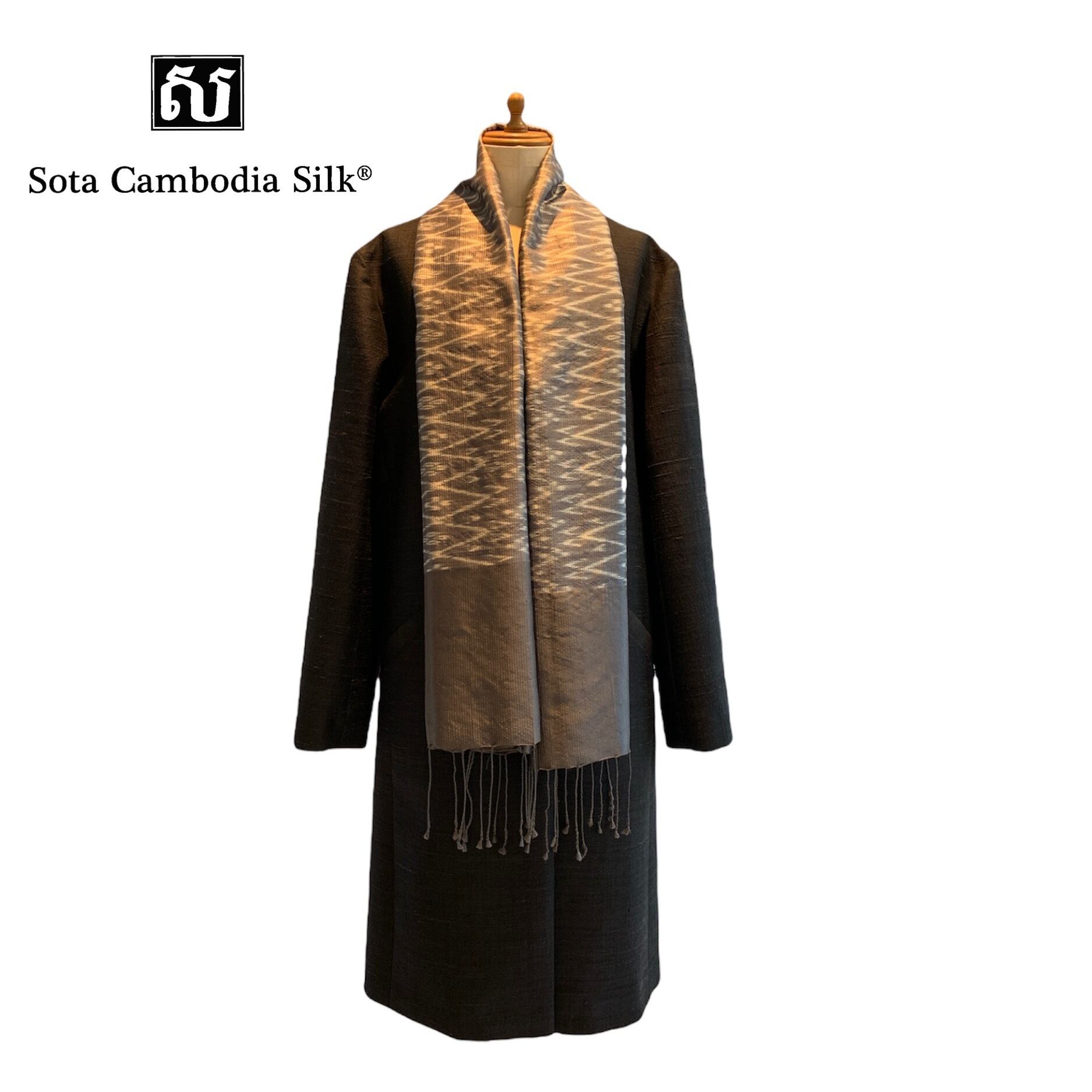 【完売】シルクストール 絣 軽いストール 兼用 カンボジアシルク シルク グレー ソウタカンボジアシルク