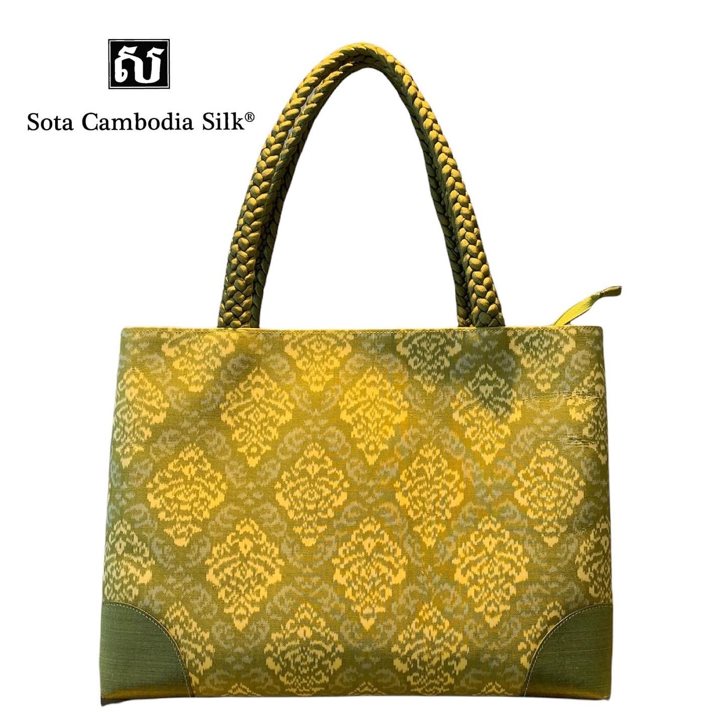 【完売】バッグ シルクバッグ 軽いバッグ 着物バッグ【新作】限定5個 緑 グリーン カンボジアシルク ソウタカンボジアシルク