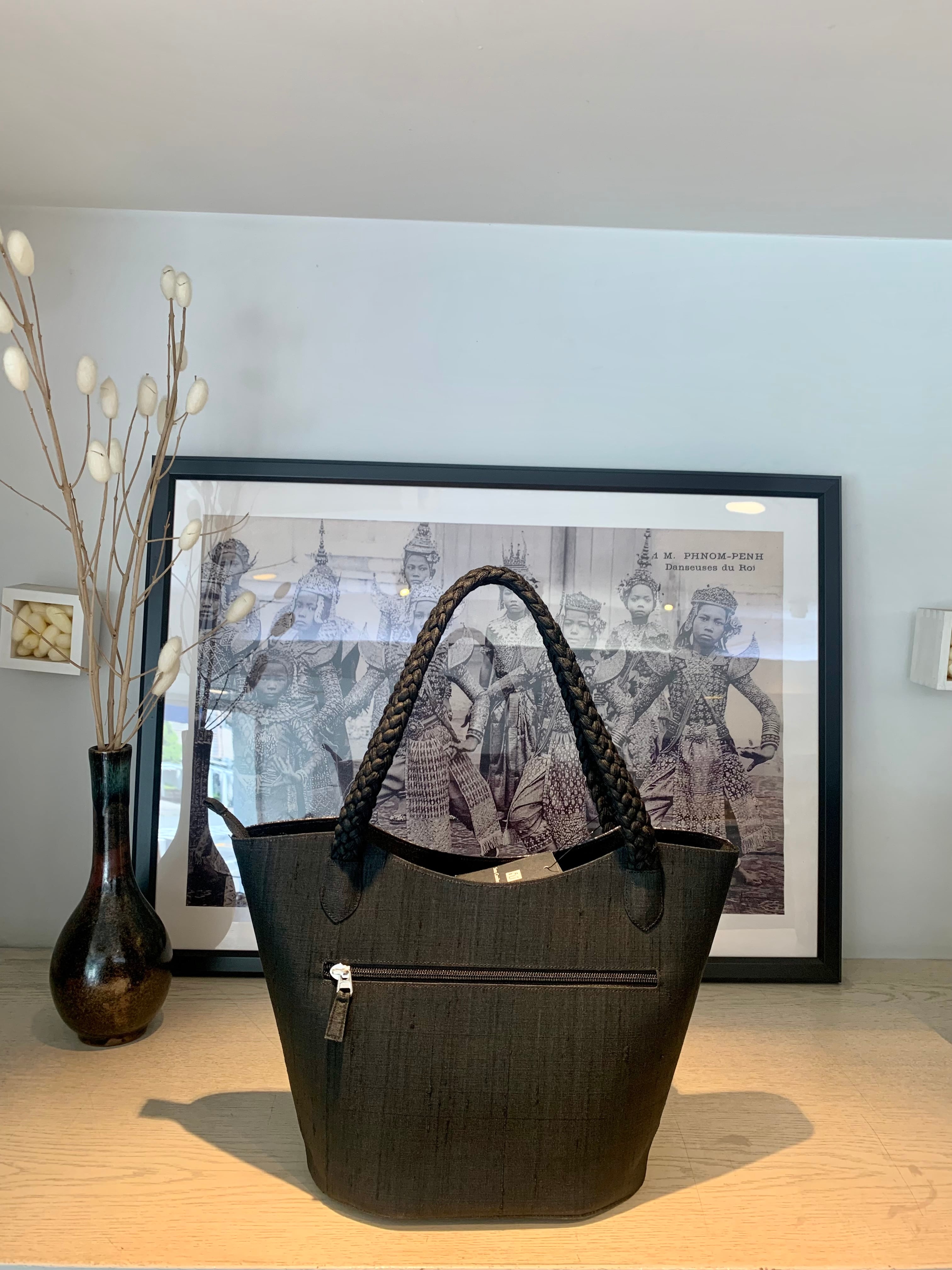 絣バッグ シルクバッグ 軽いバッグ ソウタカンボジアシルク カンボジアシルク シルク バッグ 着物バッグ ブラック