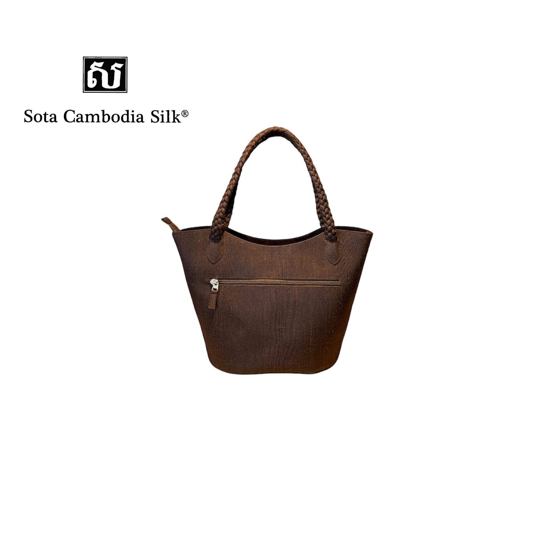 バッグ シルクバッグ 軽いバッグ ソウタカンボジアシルク カンボジアシルク シルク 着物バッグ バッグ ブラウン