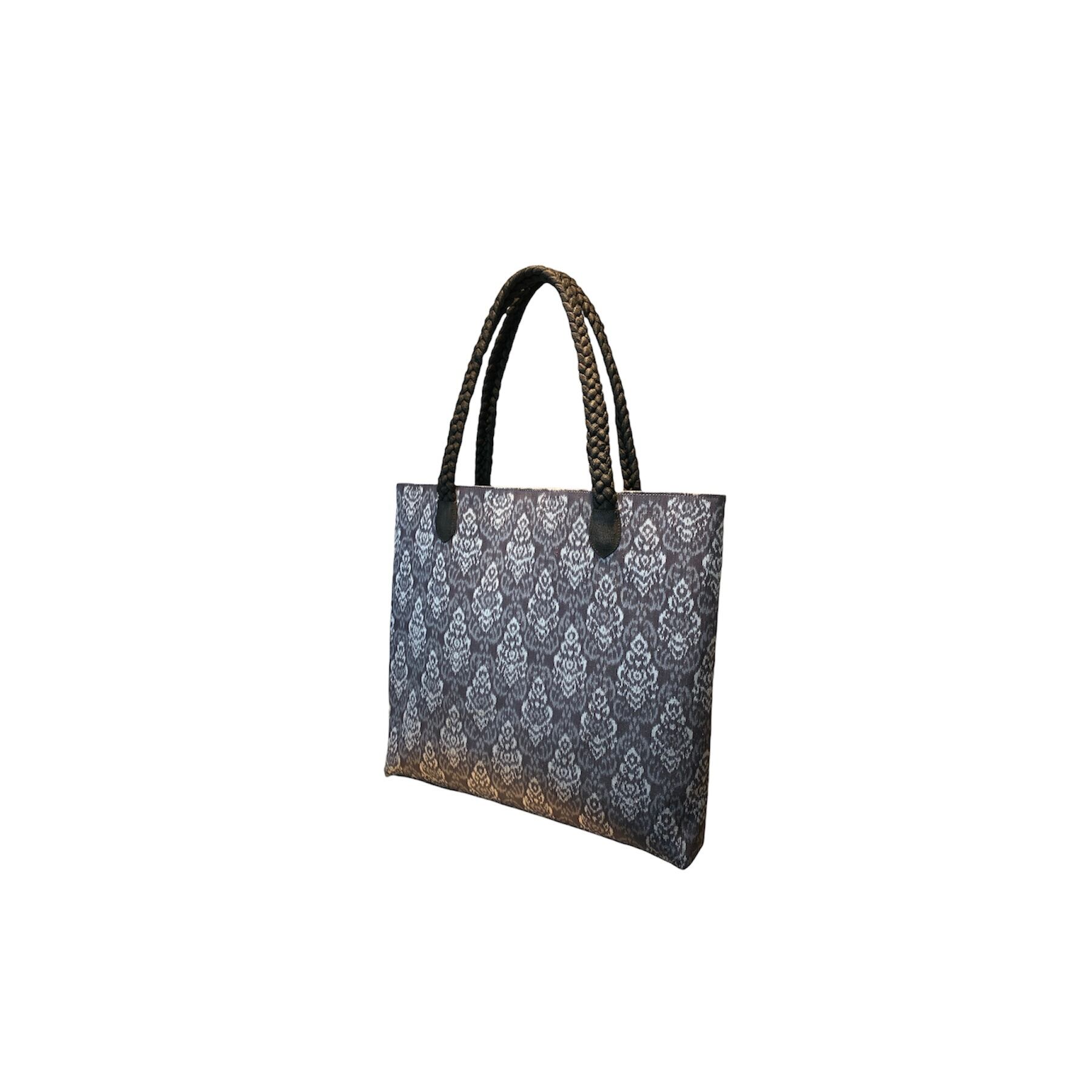 カンボジア産の上質なシルクを使用した絣バッグで独特の色と光沢がステキで滑らかな手触りが心地よいです。