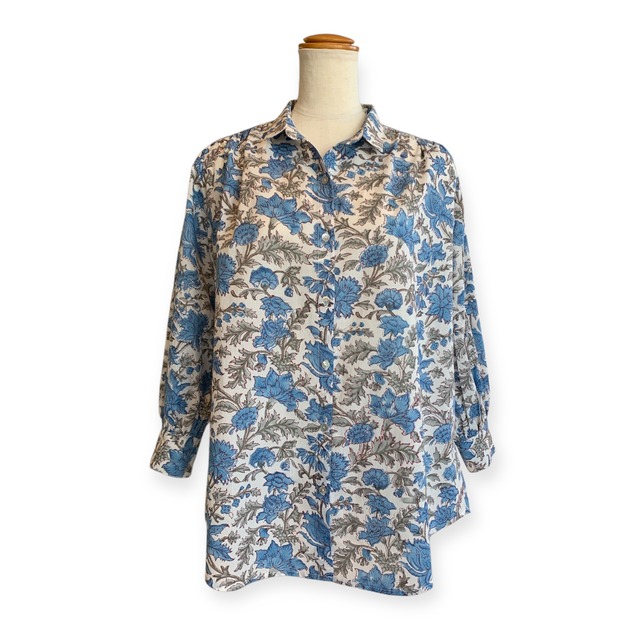 限定2枚 Mサイズがラスト1枚 シャツ 春夏ファッション 涼しい インド綿 ブロックプリント